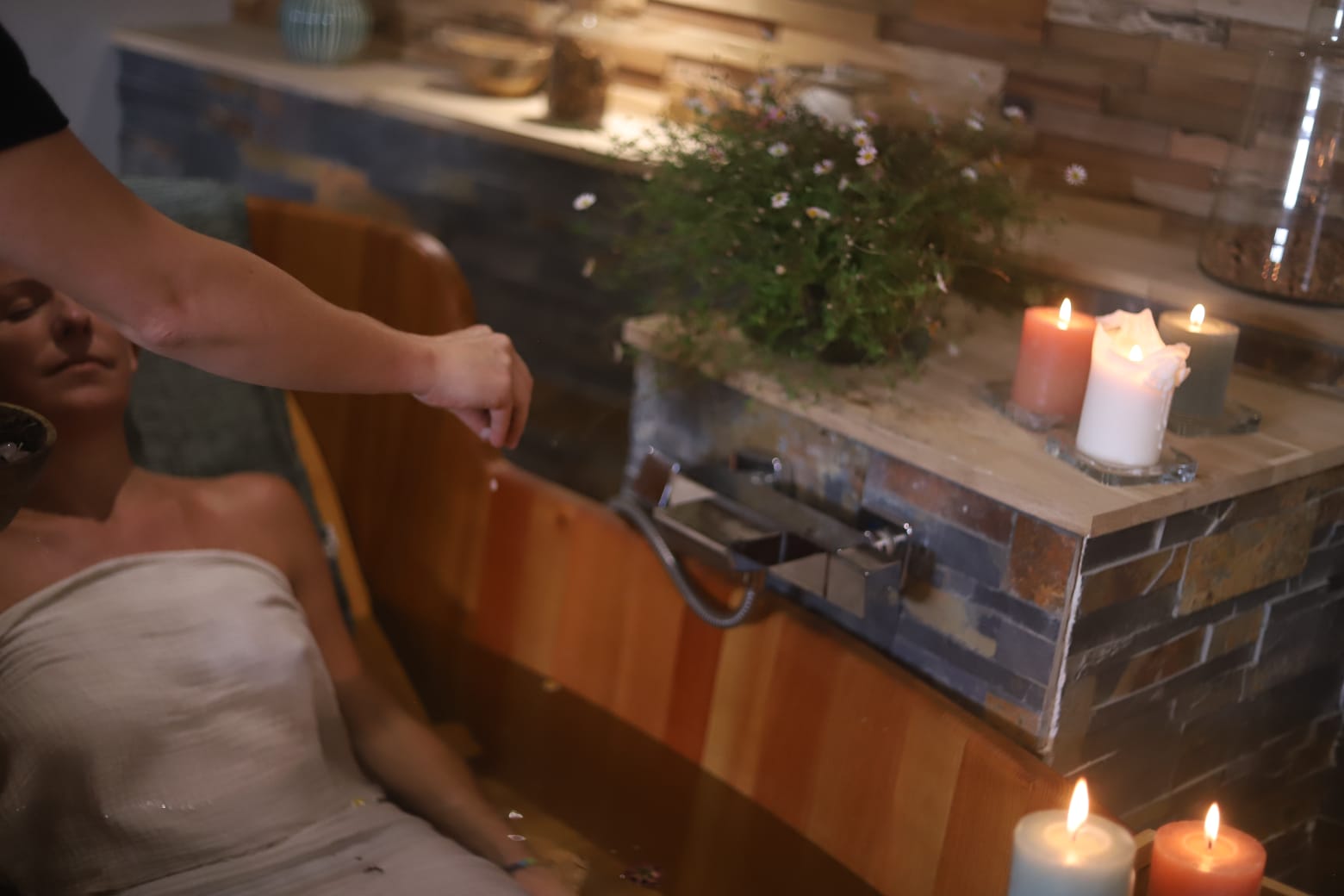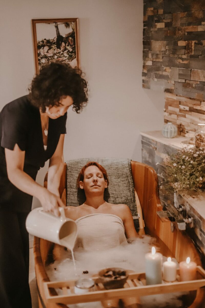 Bain, massage et moment de complicité à deux